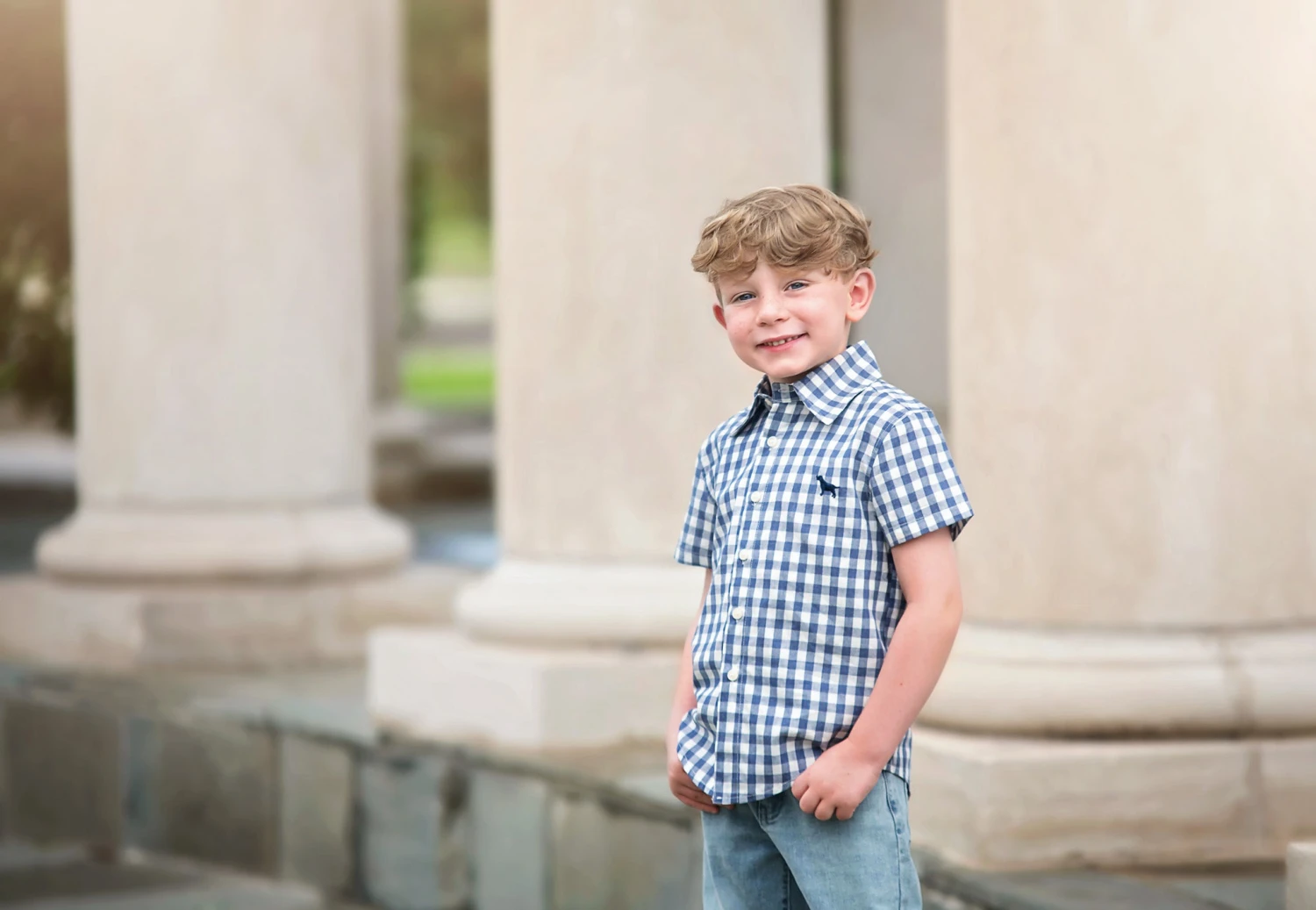 The most darling button down for your little man! This timeless gingham short sleeve pairs with just about anything and is made to take him from beach to resort to special event. Pairs well with any of our pants or shorts! Finished off with a sweet dog emblem.