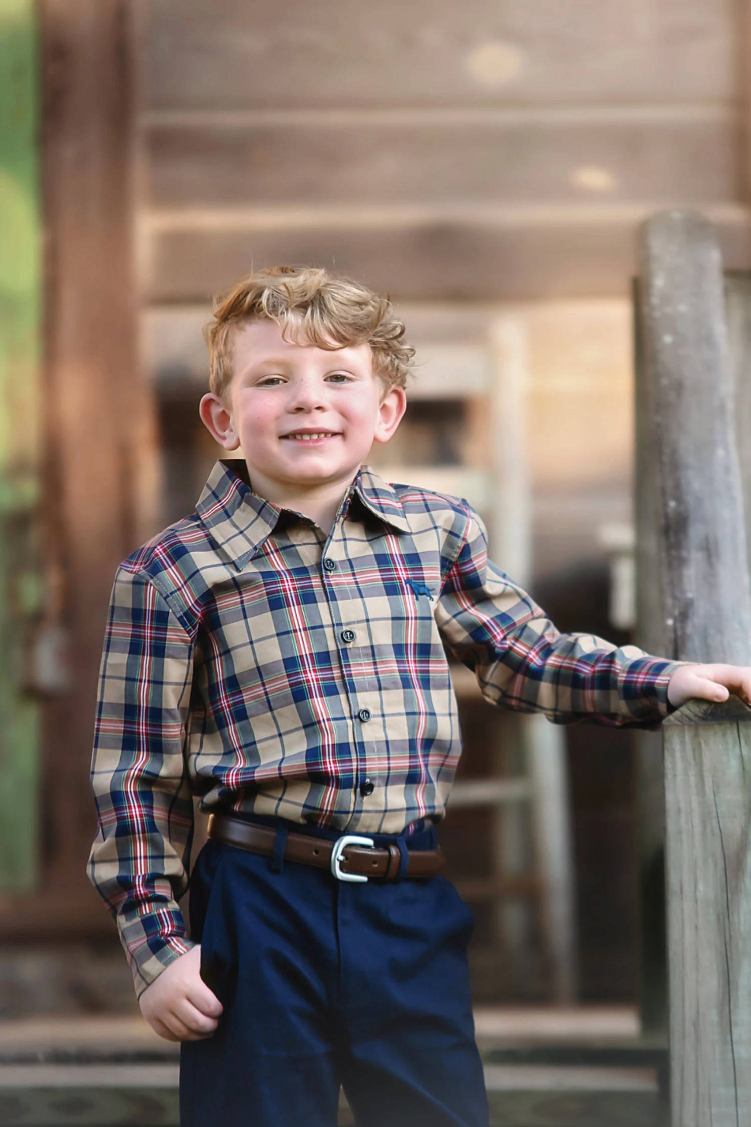 The most darling button-down for your little man! This classic long sleeve is made to be paired with just about anything, and finished off with a dog emblem. Pairs wonderfully with any of our suits or pants!
