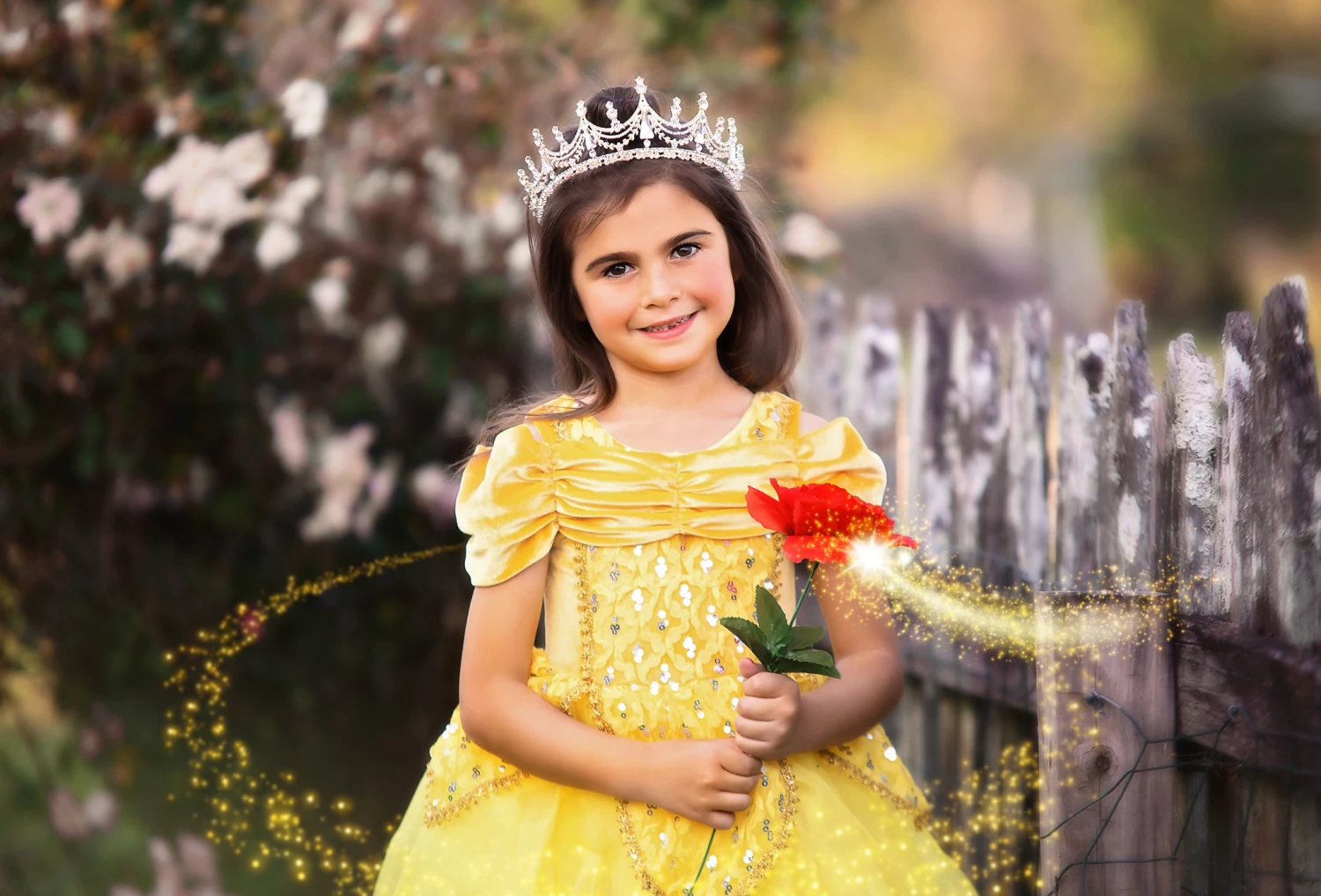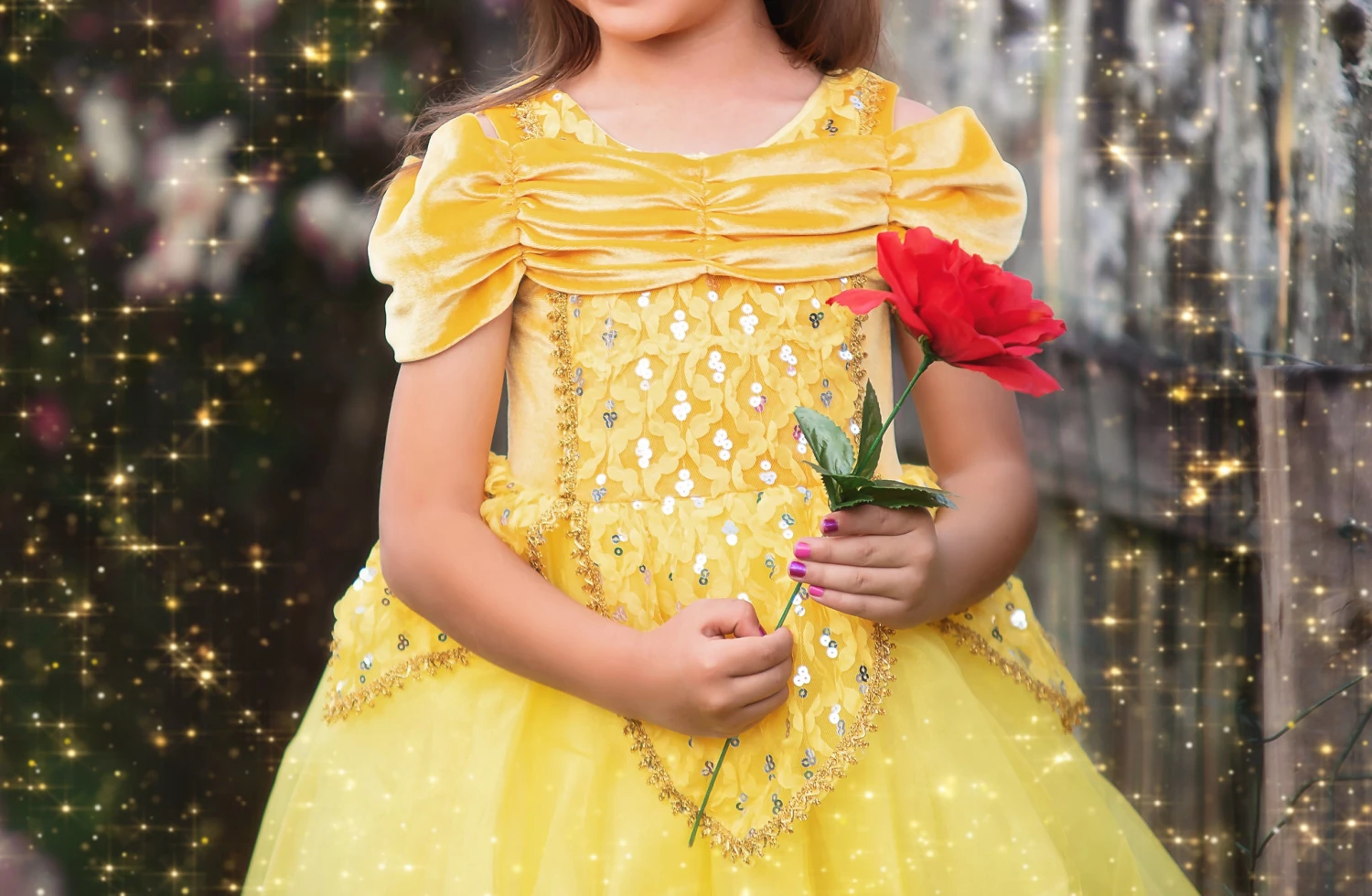One our most-loved princesses is now back in a mini-length! Perfectly sweet and oh so twirly, this regal princess dress with have your girl in a twirl! The soft velvet bodice and sleeves lead to a sequined ribbon skirt, layered with bountiful tulling. Like all of our dress up, this gorgeous mini is fully lined with soft cotton and back zips. No glitter is used on any of our products. Machine wash, hang dry.