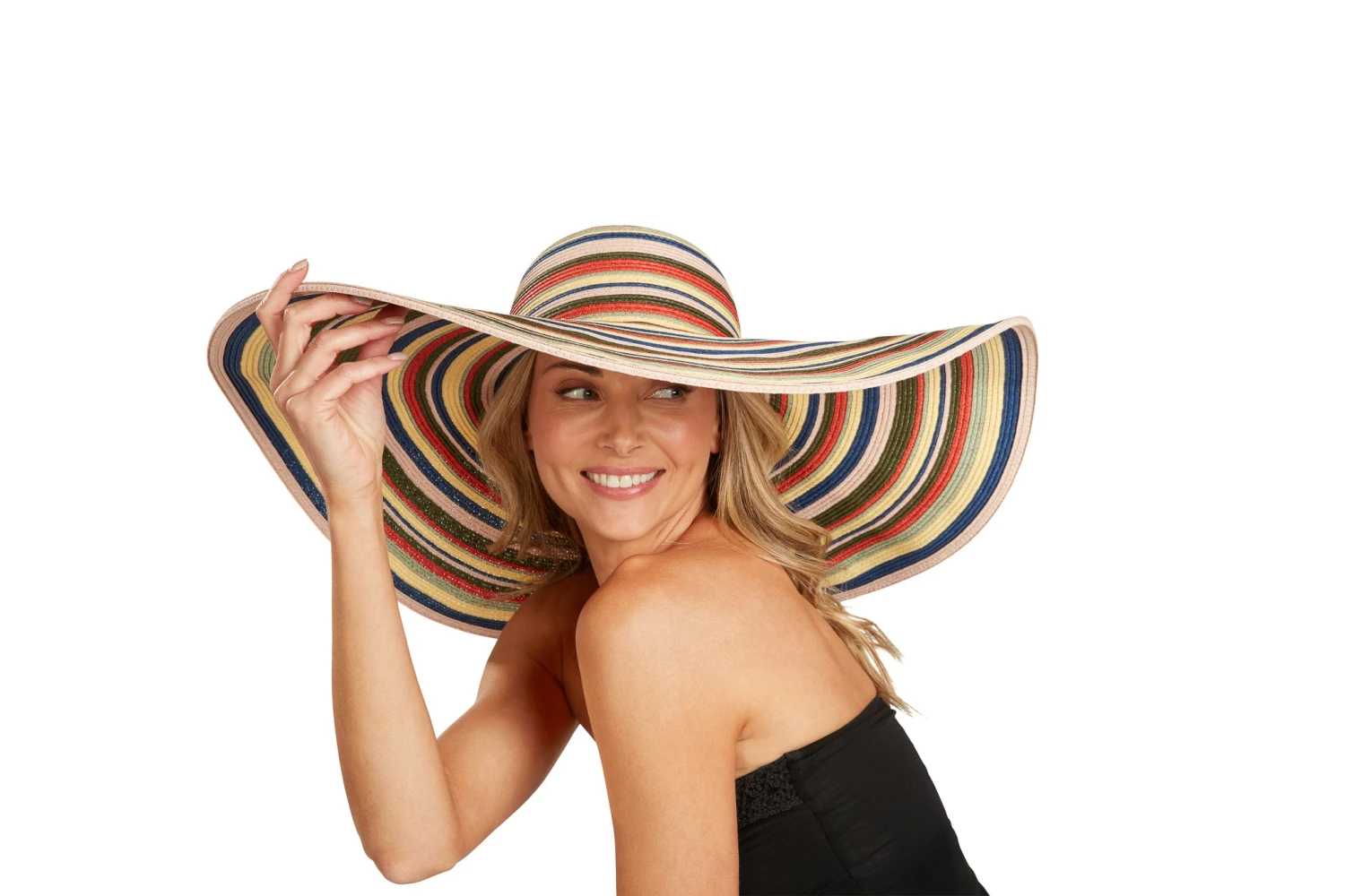 A bright and fun addition to your sunny wardrobe, this floppy hat offers the perfect amount stylish sun protection. This hat features an adjustable grosgrain ribbon for a perfect fit.