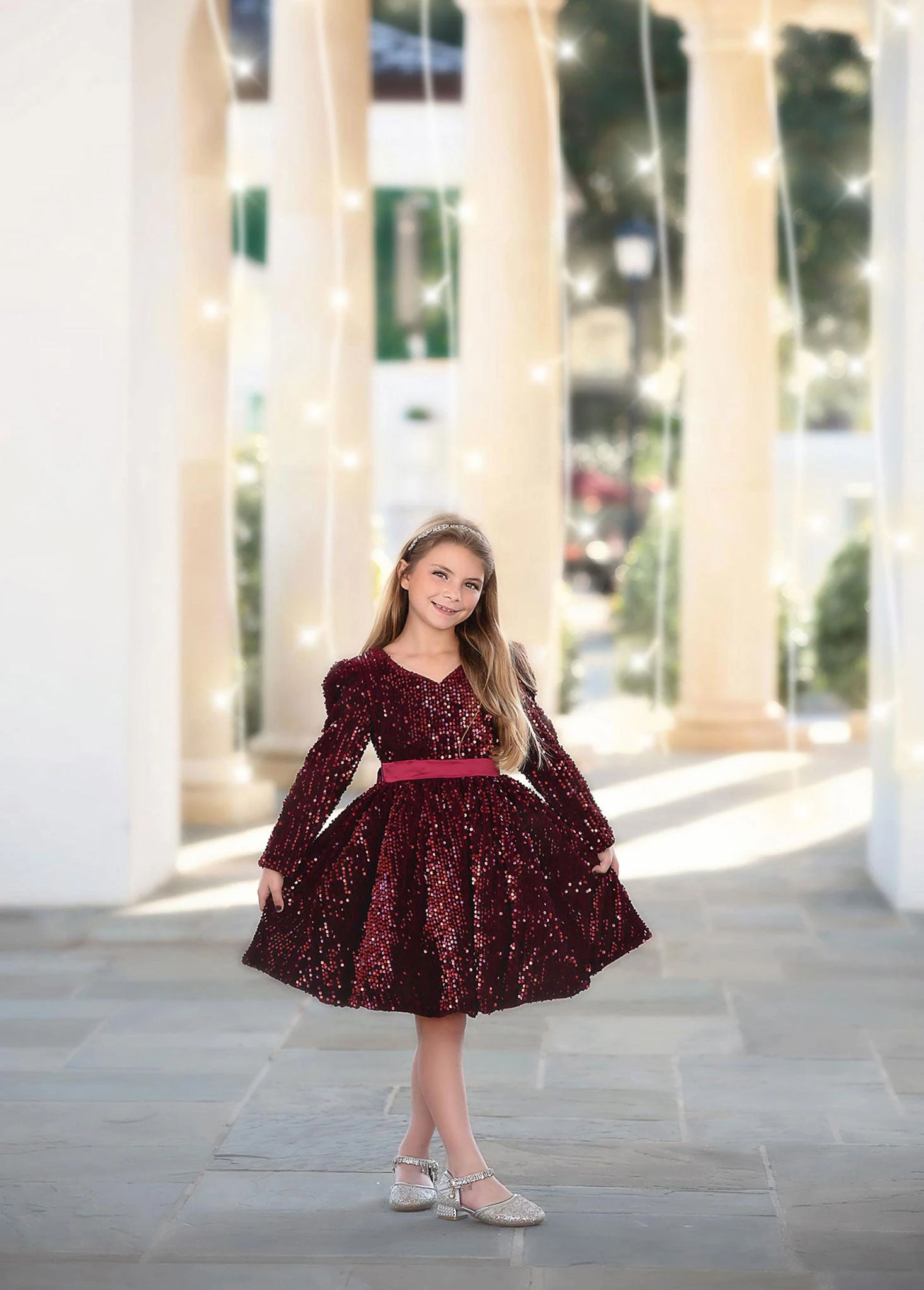 The Emma Dress is all things glam, sweet and sophisticated. This sweet A-line dress features gorgeous puff sleeves, sequins galore and is finished off with a sweet satin bow.