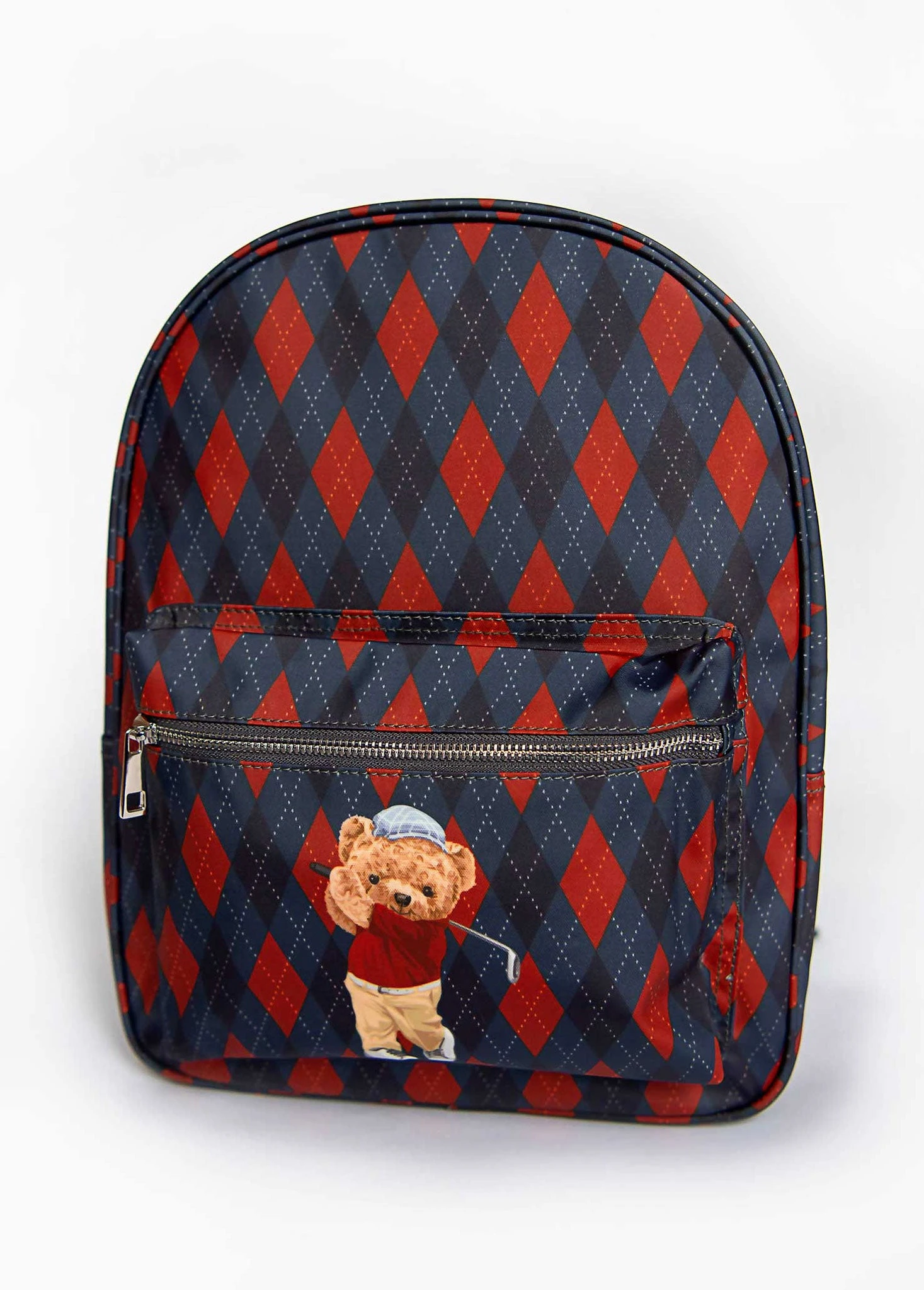 This darling argyle print backpack features a front pocket for all of his favorite keepsakes and essentials. Perfect for school, play, sleepovers and more! Includes adjustable straps for the perfect fit.
